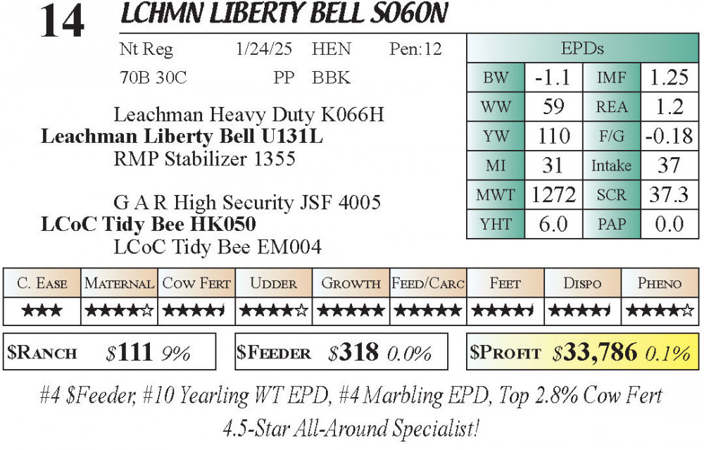 #4 $Feeder, #10 Yearling WT EPD, #4 Marbling EPD, Top 2.8% Cow Fert