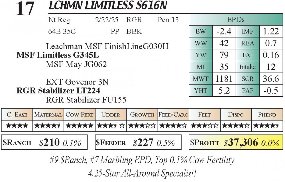 #9 $Ranch, #7 Marbling EPD, Top 0.1% Cow Fertility