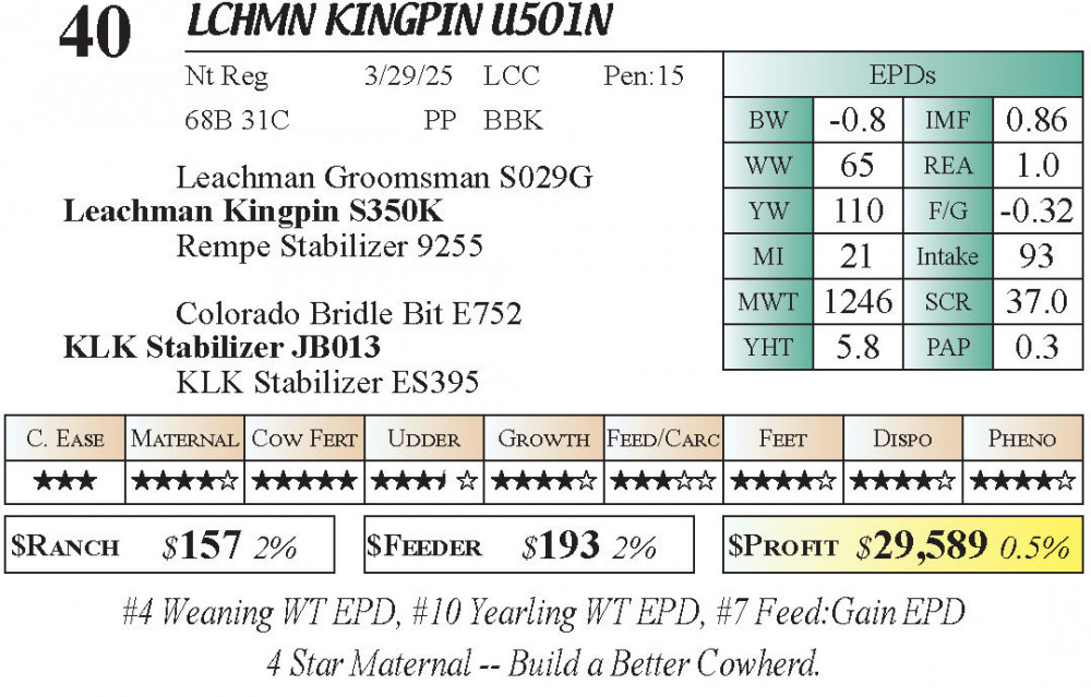 U501N (#40) 5.2.26 Grass Time Bull & Female Sale 10:00 am MTN Bull - Stabilizer
