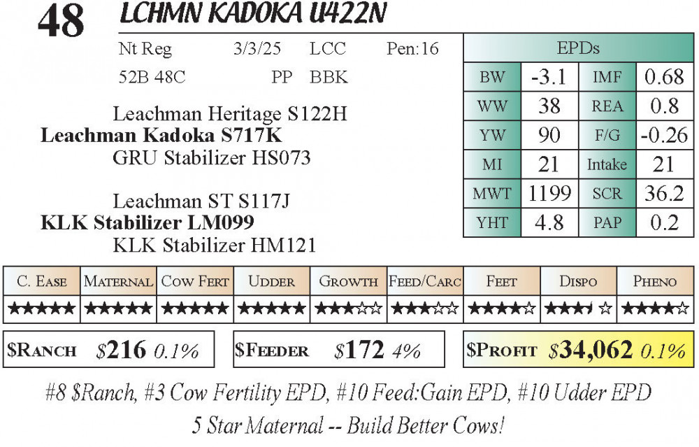 #8 $Ranch, #3 Cow Fertility EPD, #10 Feed:Gain EPD, #10 Udder EPD