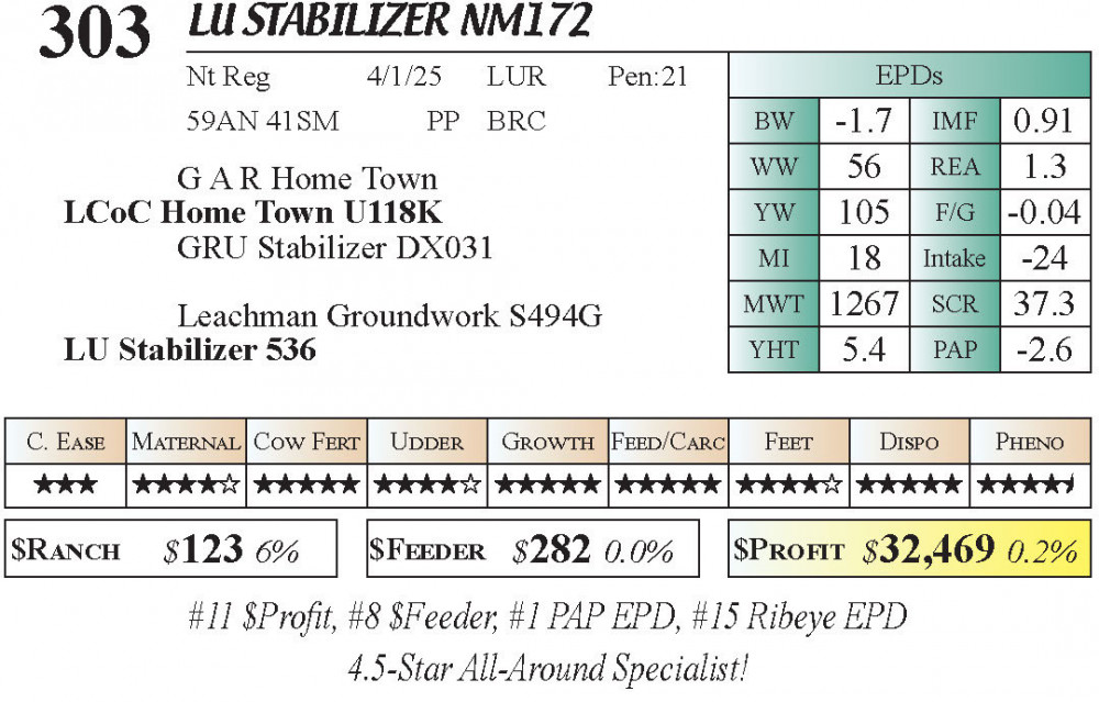 #11 $Profit, #8 $Feeder, #1 PAP EPD, #15 Ribeye EPD