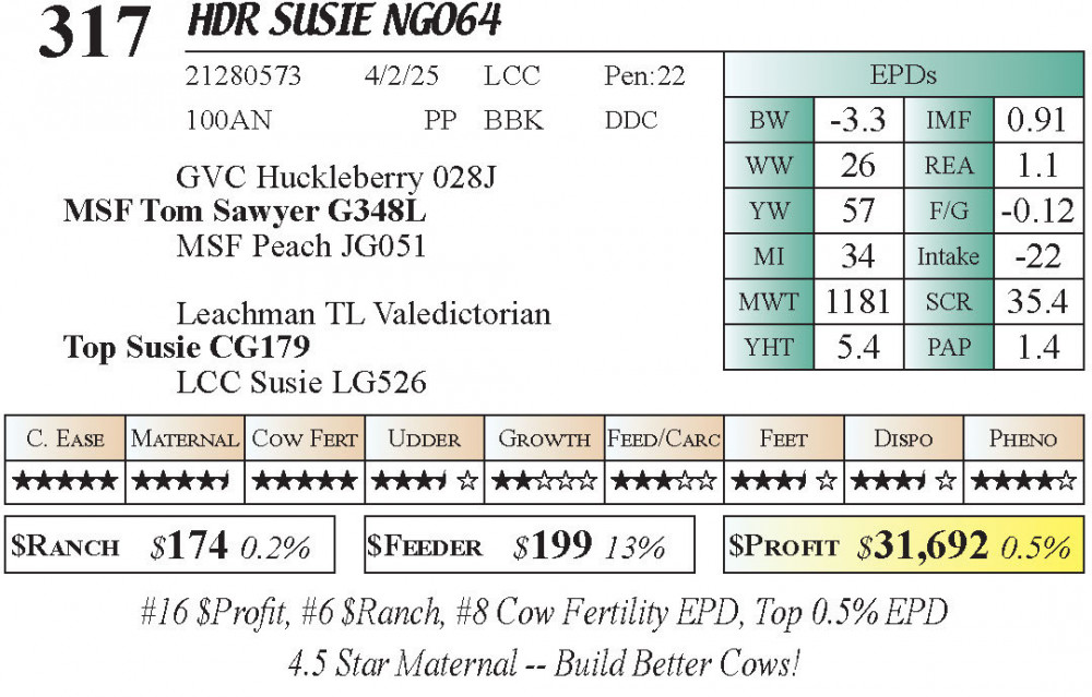 #16 $Profit, #6 $Ranch, #8 Cow Fertility EPD, Top 0.5% EPD