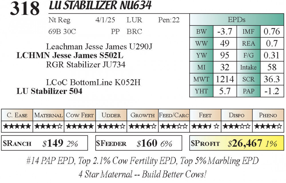 NU634 (#318) 5.2.26 Grass Time Bull & Female Sale 10:00 am MTN Stabilizer Female