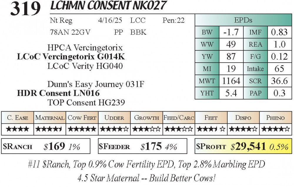 #11 $Ranch, Top 0.9% Cow Fertility EPD, Top 2.8% Marbling EPD