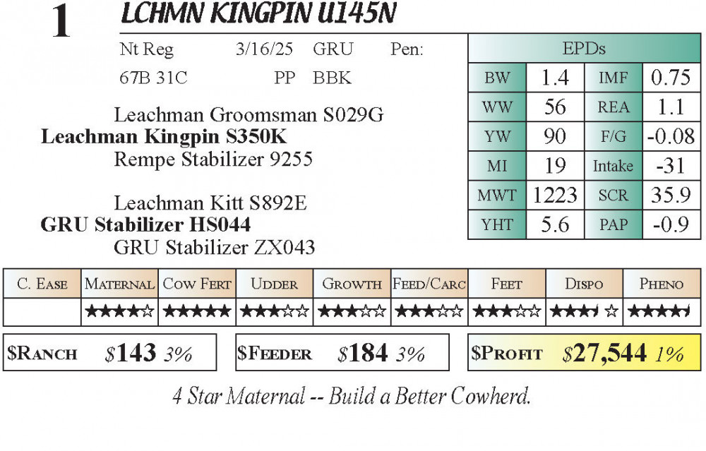 LCHMN Kingpin U145N (#1) 4.23.26 Buckeye Stabilizer - Racehorse Style Sale 4PM ET