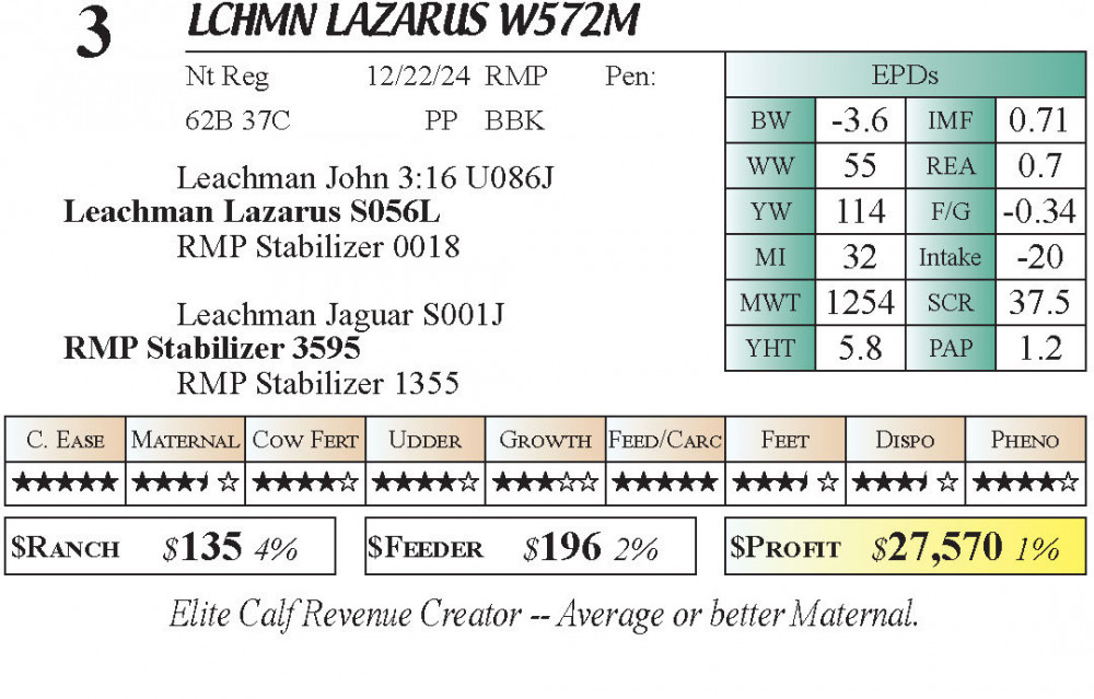 LCHMN Lazarus W572M (#3) 4.23.26 Buckeye Stabilizer - Racehorse Style Sale 4PM ET