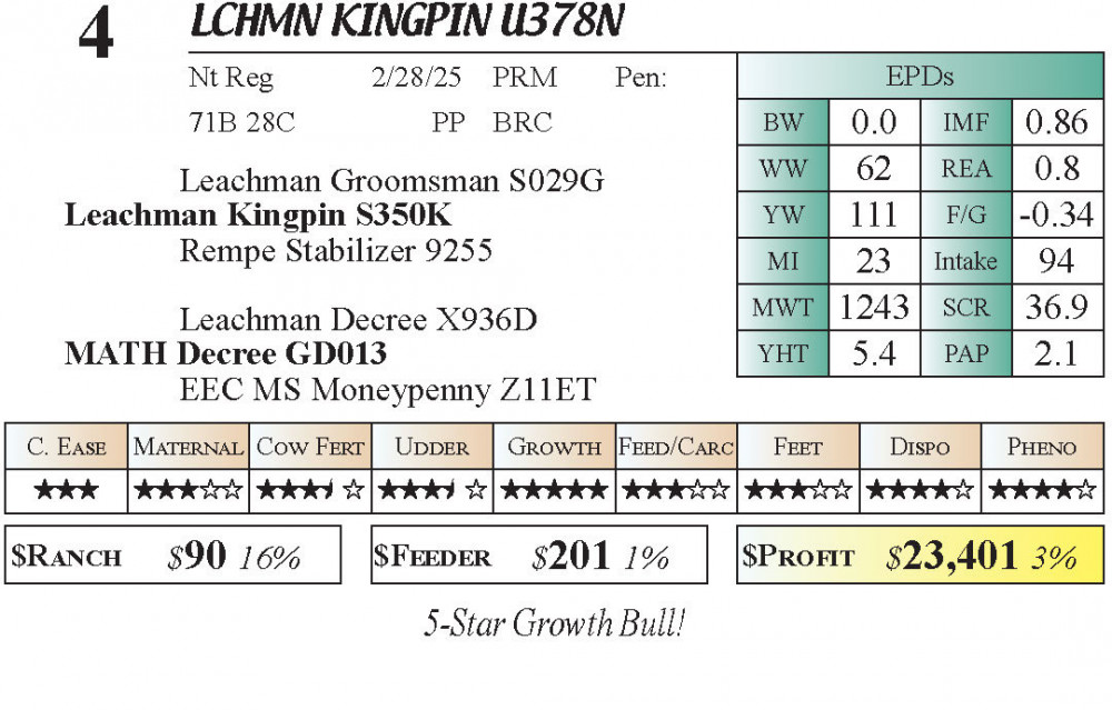 LCHMN Kingpin U378N (#4) 4.23.26 Buckeye Stabilizer - Racehorse Style Sale 4PM ET