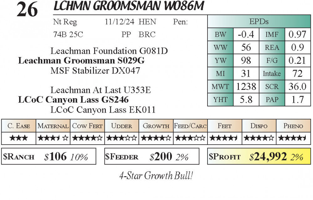 LCHMN Groomsman W086M (#26) 4.23.26 Buckeye Stabilizer - Racehorse Style Sale 4PM ET