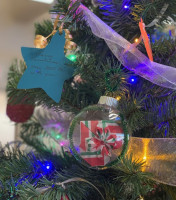 This is primarily the patients' Christmas tree with their visions and memories of their happy place: kites flying to the sky, and close-ups of origami hearts and boxes.