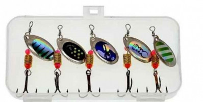 5 pcs/Set Fishing Lure Spinnerbait Bass Trout Salmon Hard Metal Spinner Baits Kit with Tackle Boxes Bin 11 ***