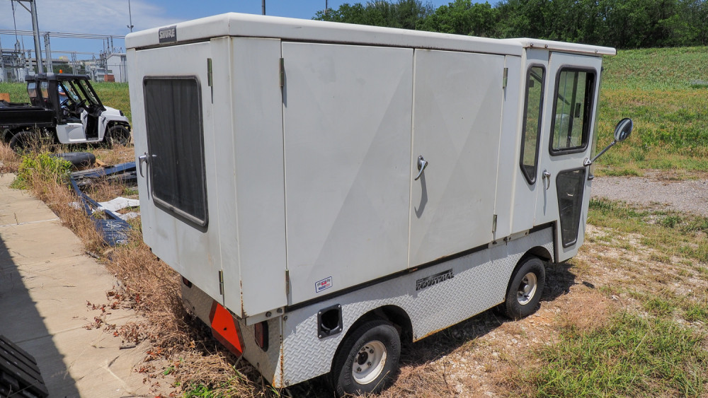 48 V, built-in charger, steel body Condition:Moves forward and back, batteries show full charge. *The University of Texas at Austin makes no claim of physical or mechanical condition, and functionality of items available through SWICO Auctions. All items are sold “As is, where is”. It is the sole responsibility of the bidder to physically inspect items before bidding and assume all risk. Photos and descriptions are for preview only. All sales are final and no refunds will be issued. Please refer to the SWICO “Terms of Service” in which you have agreed to.