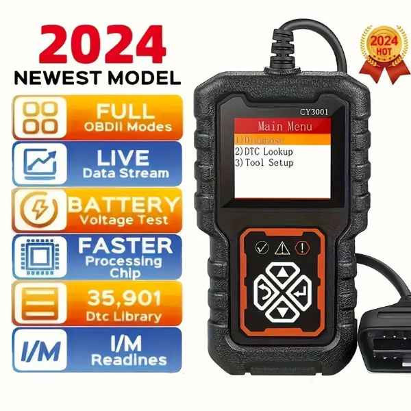 OBD2 Scanner Tool with Full OBDII Mode, Live Data Stream, Battery Test, I/M Readiness