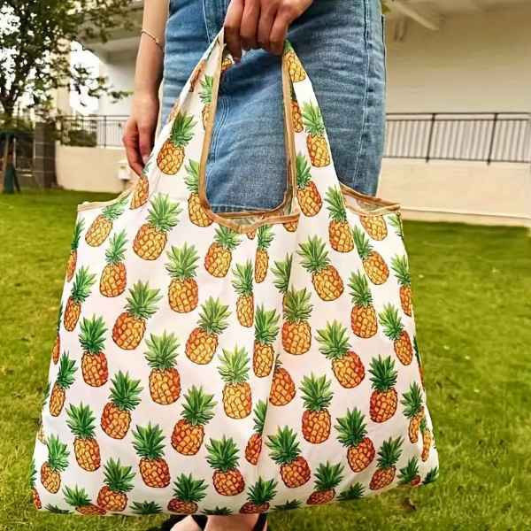 Waterproof Large Capacity Portable Lightweight Shopping Bag With Inner Bag, Cute Pineapple Printed Pattern Bin 11 Great Deals and Steal