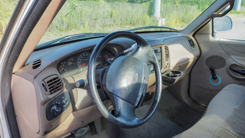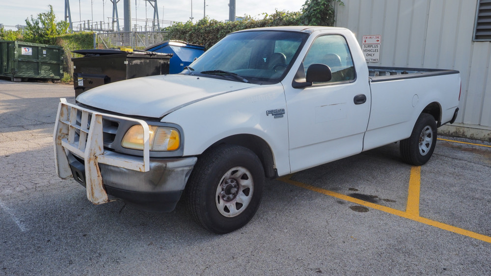¾-ton pickup truck with 4.6L gas motor and automatic transmission. Equipped with cloth interior, long bed, AM/FM radio, manual windows/locks, and cold-blowing A/C. Paint peeling on passenger door, scratches and dents around body. Condition:Runs and drives to location *The University of Texas at Austin makes no claim of physical or mechanical condition, and functionality of items available through SWICO Auctions. All items are sold “As is, where is”. It is the sole responsibility of the bidder to physically inspect items before bidding and assume all risk. Photos and descriptions are for preview only. All sales are final and no refunds will be issued. Please refer to the SWICO “Terms of Service” in which you have agreed to.