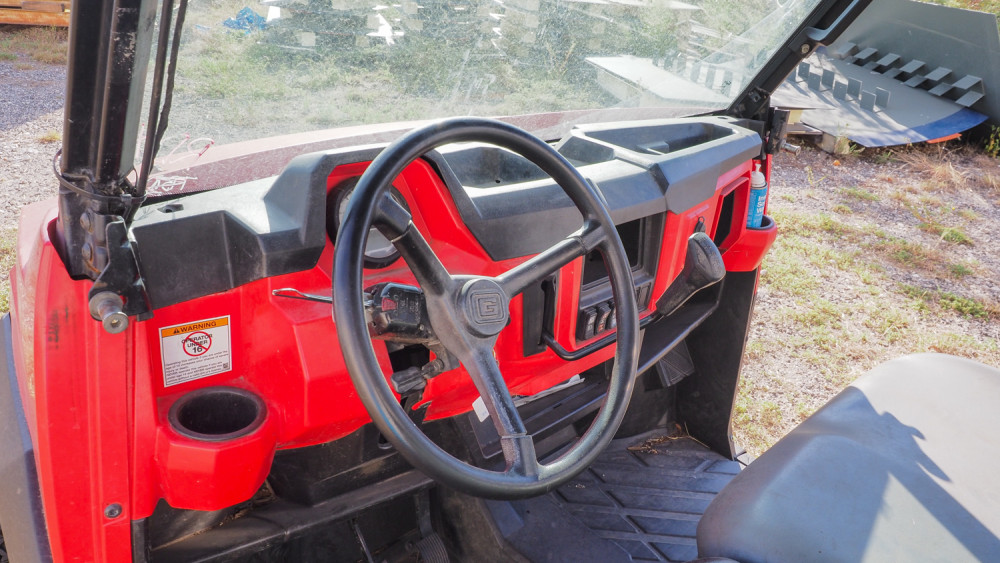 Utility side-by-side UTV with electric dump bed, 4-wheel drive, and automatic transmission. Heavy-duty design suited for landscaping, farm, or grounds work. Compact footprint makes it versatile for on- and off-road use. Condition:Runs and drives, bed operates *The University of Texas at Austin makes no claim of physical or mechanical condition, and functionality of items available through SWICO Auctions. All items are sold “As is, where is”. It is the sole responsibility of the bidder to physically inspect items before bidding and assume all risk. Photos and descriptions are for preview only. All sales are final and no refunds will be issued. Please refer to the SWICO “Terms of Service” in which you have agreed to.