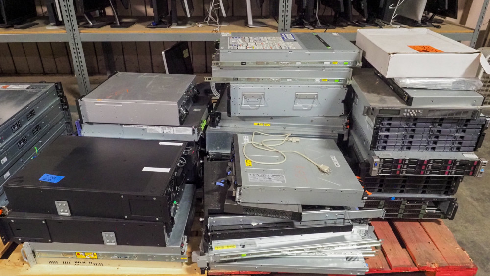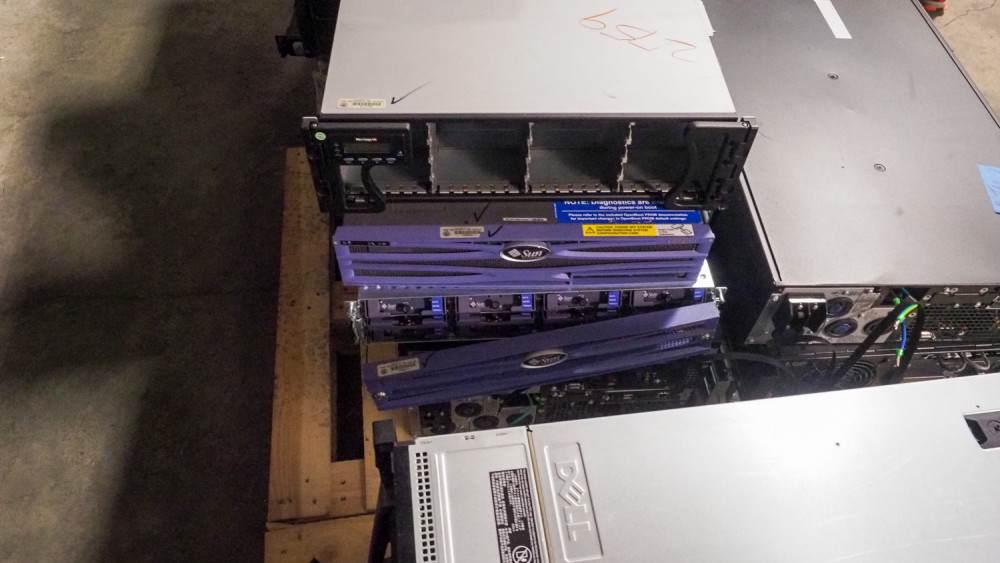 Assorted enterprise server hardware including Dell PowerEdge 2950, PowerEdge R720, and PowerVault MD1220 for storage. Also features Sun Sunfire V240, Sun SPARC Enterprise T5220, IBM NetScaler appliance, HP ProLiant DL380P Gen8, plus APC battery backup units. Useful for IT rebuilds, spare parts, or training labs. Condition:Used *The University of Texas at Austin makes no claim of physical or mechanical condition, and functionality of items available through SWICO Auctions. All items are sold “As is, where is”. It is the sole responsibility of the bidder to physically inspect items before bidding and assume all risk. Photos and descriptions are for preview only. All sales are final and no refunds will be issued. Please refer to the SWICO “Terms of Service” in which you have agreed to.