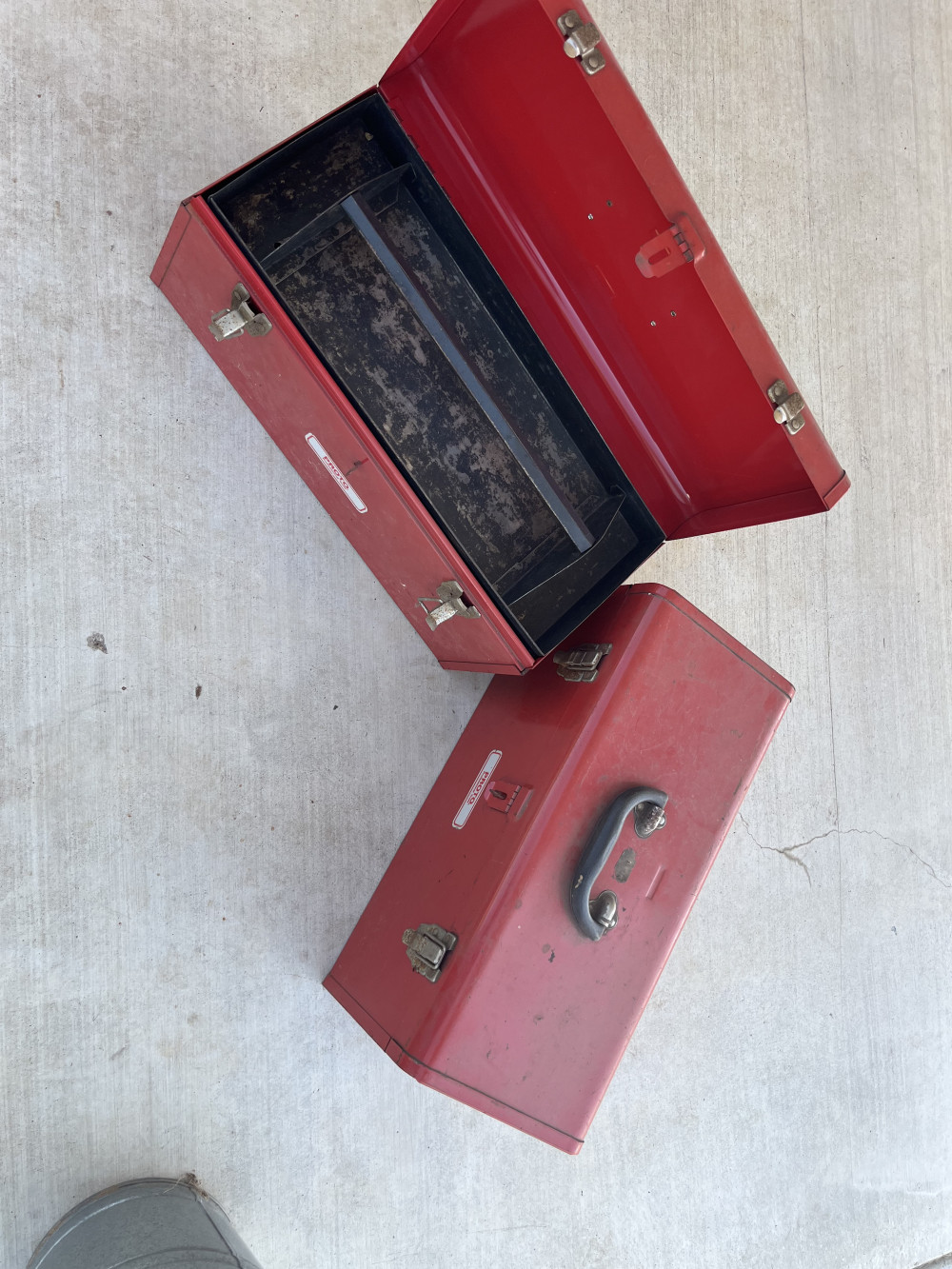 Quantity of 2 Proto tool-boxes with trays in very good condition. Both measure 20 inches x 9 inches x 9 inches.