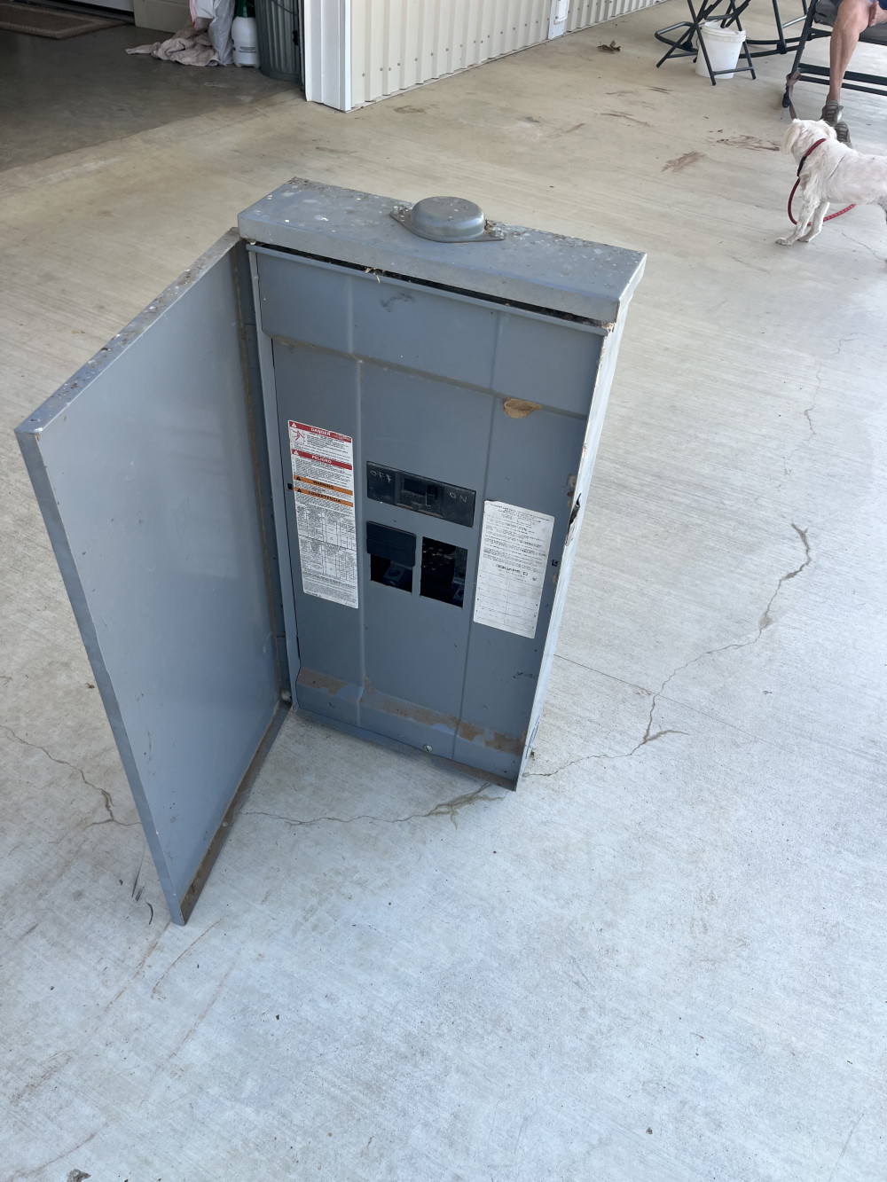 Square D electrical box with 200 amp main breaker.