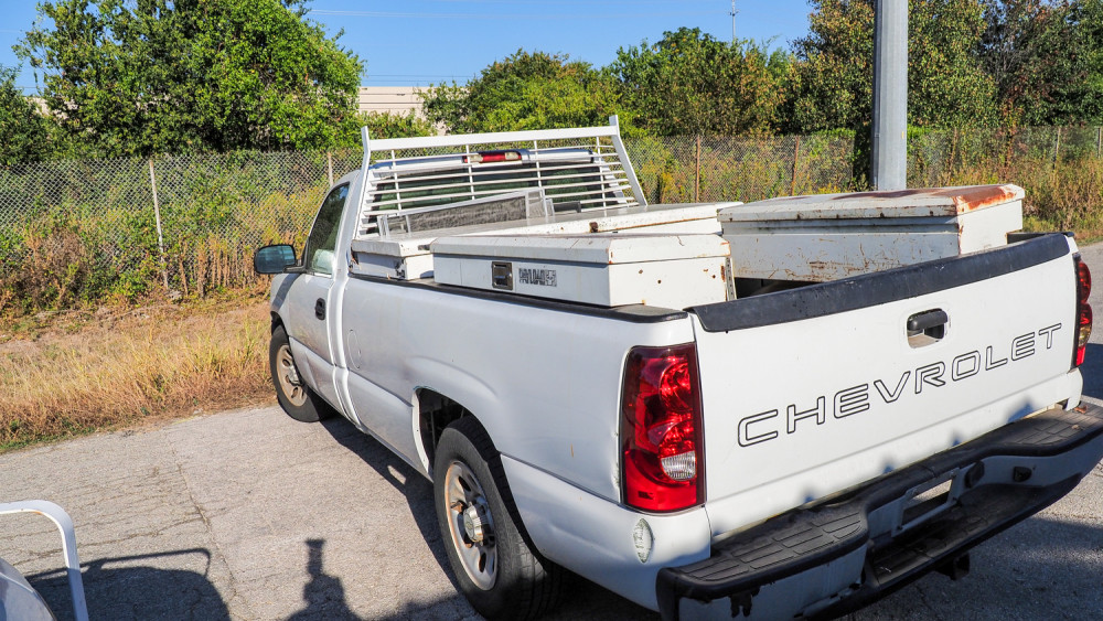 5.3 L gas motor; automatic transmission; AM/FM radio; A/C; manual locks/windows; three steel toolboxes with four keyed-alike locks (top and rear) Condition:Runs and drove to location; dent in driver door and rear corners; small dents/dings overall *The University of Texas at Austin makes no claim of physical or mechanical condition, and functionality of items available through SWICO Auctions. All items are sold “As is, where is”. It is the sole responsibility of the bidder to physically inspect items before bidding and assume all risk. Photos and descriptions are for preview only. All sales are final and no refunds will be issued. Please refer to the SWICO “Terms of Service” in which you have agreed to.