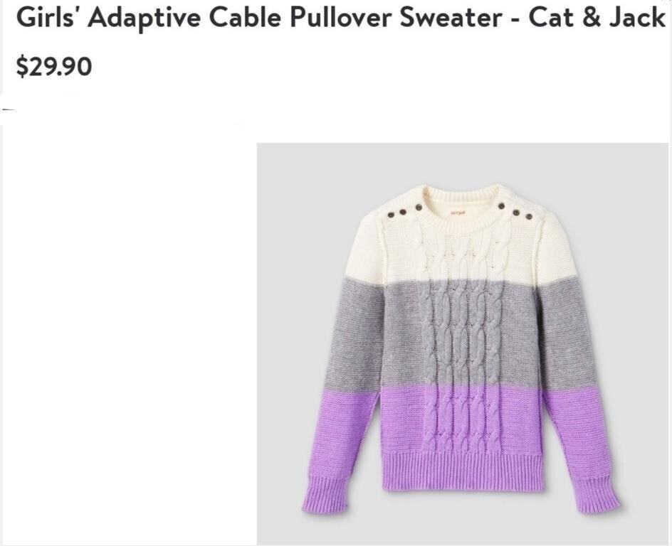 Sz M Cat & Jack Girls Adaptive Pullover Sweater, White/Grey/Purple NEW 3236cl Bin C Great Deals and Steal