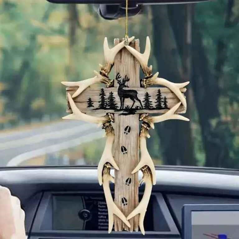 Rustic Wooden Cross with Deer And Pine Trees - 8Cm/3.14In X 5.18Cm/2.03In Great Deals and Steal