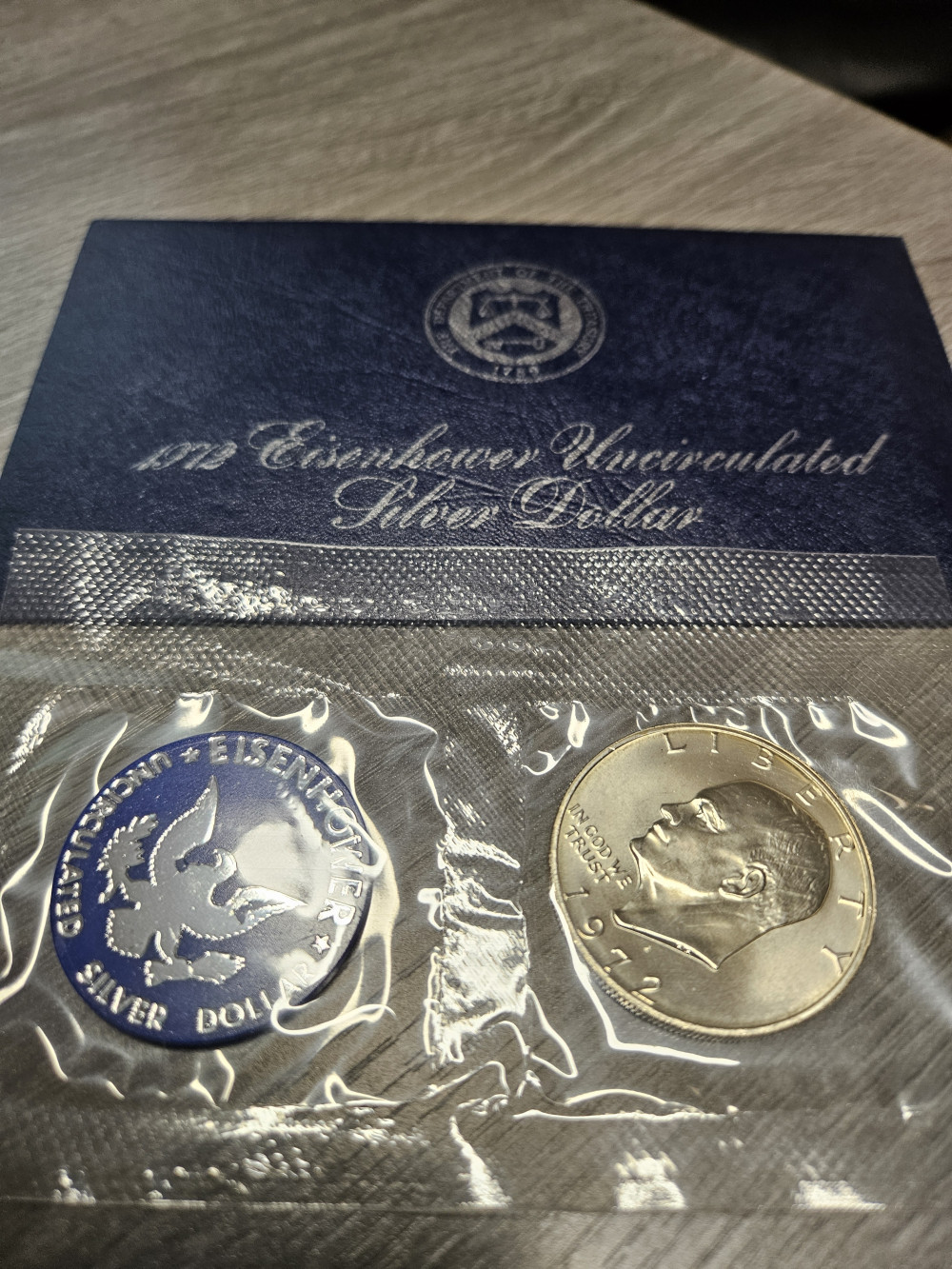 1972 S Silver Uncirculated Eisenhower Silver Dollar in mint packaging Variety 2