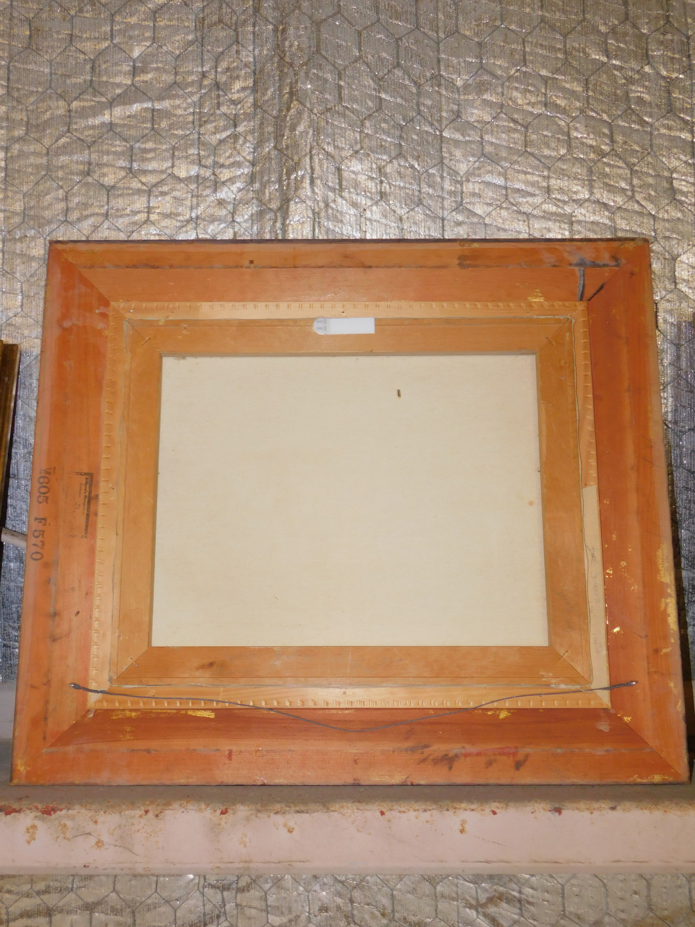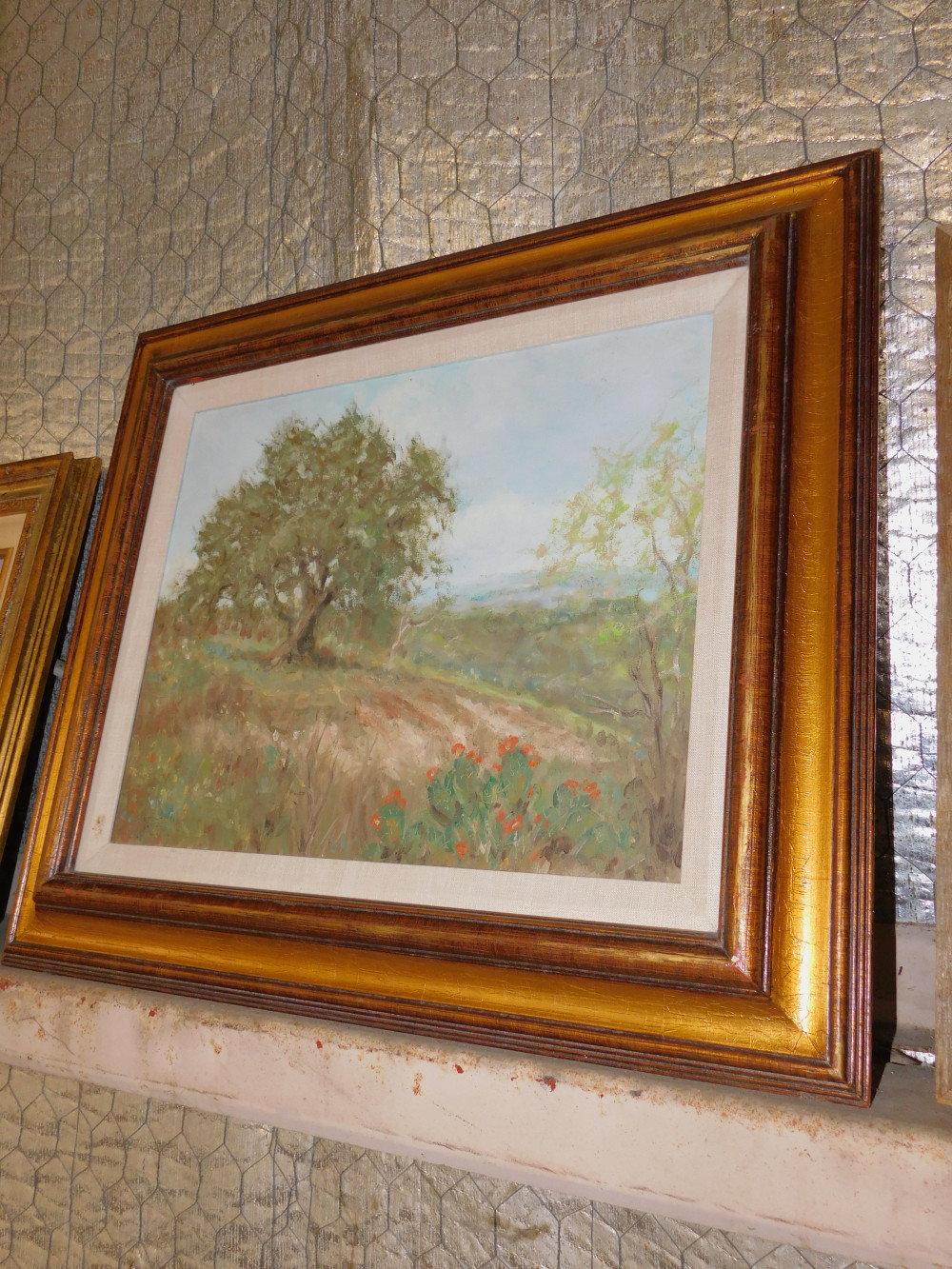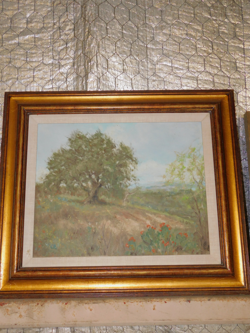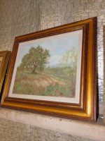 Painting of Nature (#1). Wear to frame and painting surround. No artist mark. Possibly watercolor. 29x25"