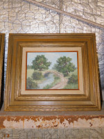 Painting of Nature (#3). Wear to frame and painting surround. "scott" artist mark . 20x20"