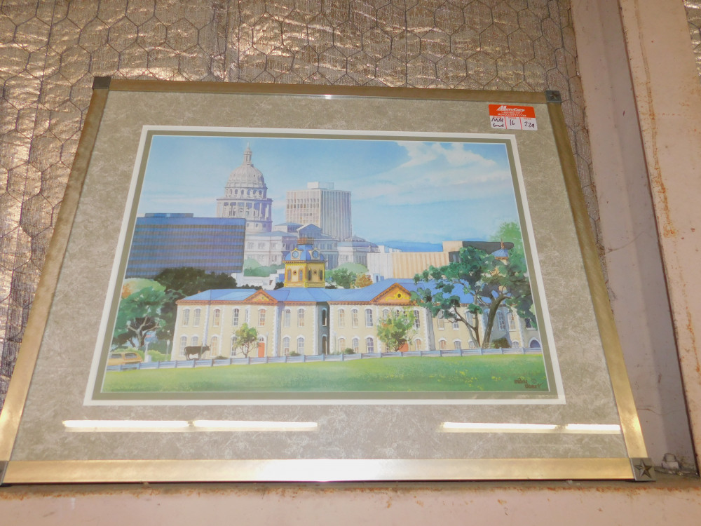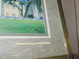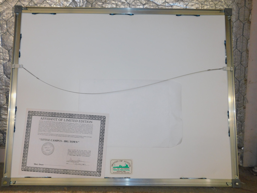 "Little Campus - Big Town" Art Print by Mary Doerr. #257/500 limited edition. Slight wear to metal frame, glass is intact with no major scratching. comes with authenticity certificate. 28x22"