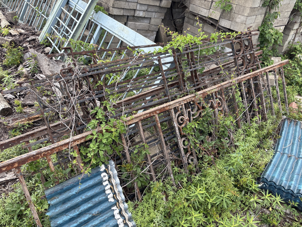 Three rod iron fence panels 8.5 ft tall X 5ft wide