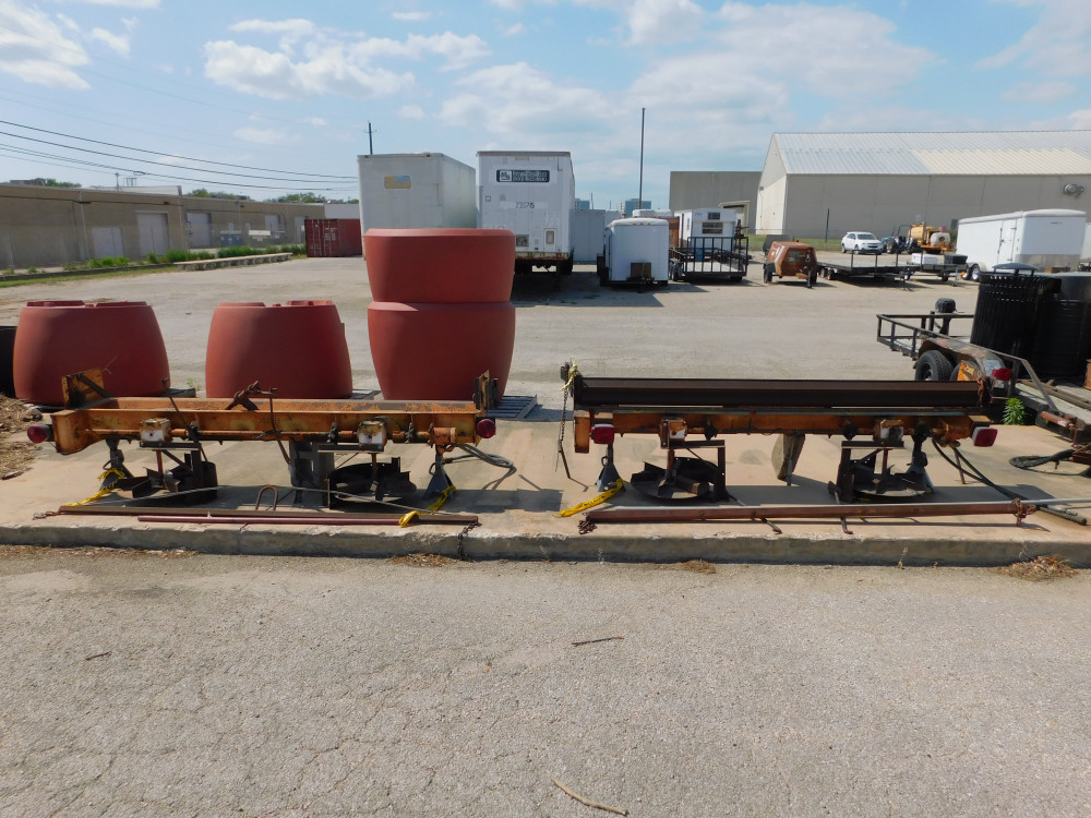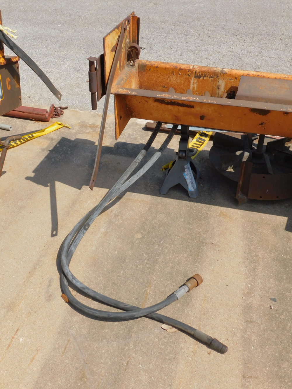 Spreader attachments, lot of 2. Hydro driven pumps, operating condition unknown, jack stands are not included. 8 ft long each.