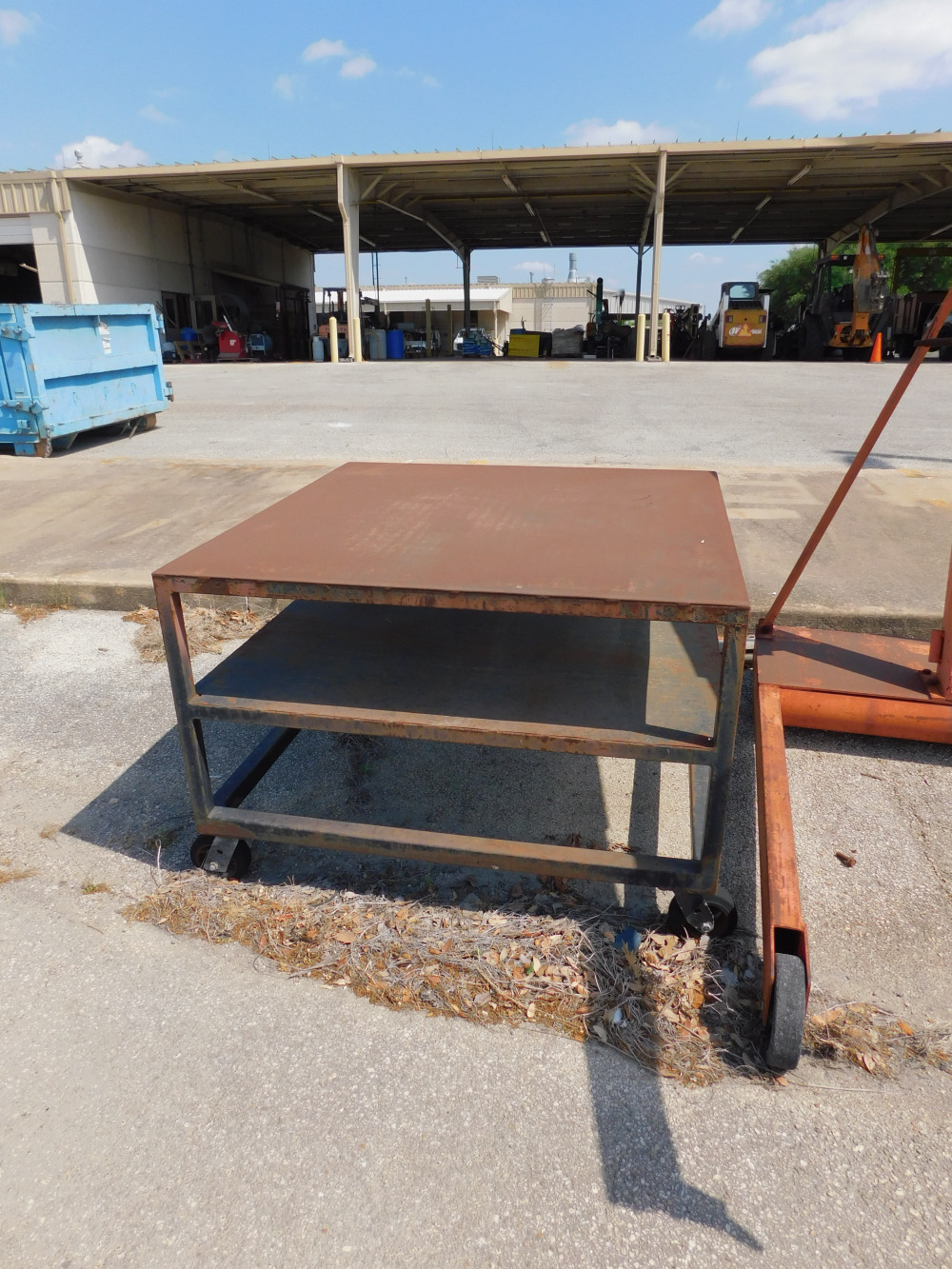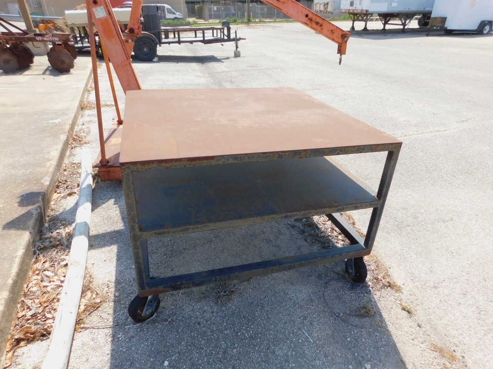 Steel Welding Table on casters, one shelf. 48" x 48" x 33".