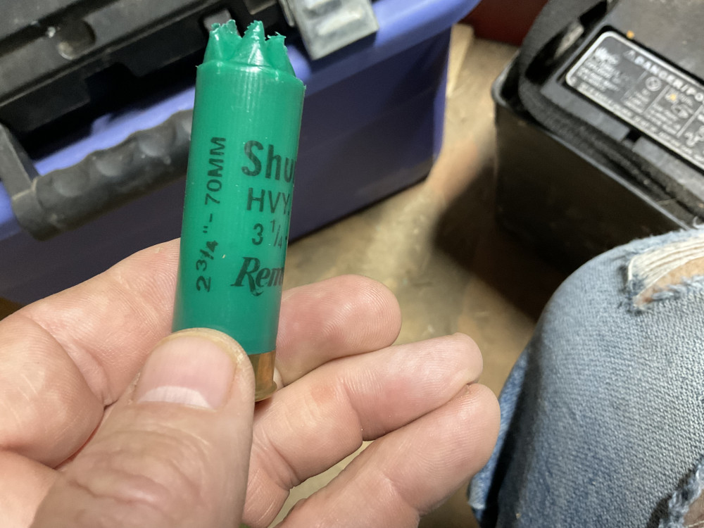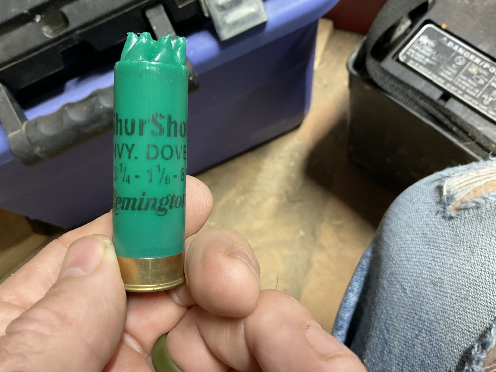 Reload hulls with primers installed. Appears to have wadding also. Marked 2 3/4”-70 mm and also 3 1/4-1 1/8-8. 125 in all