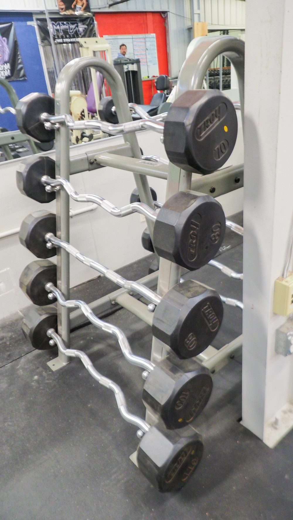 ** Winning this bid is contingent on the higher of Lot 0 the Entirety of Auction Items lot and the total of the individual Lots**. If the Lot 0 Entirety of Auction Items lot sells for a higher value than the total of the individual lots; the auction items will be sold to the high bidder of the Entirety lot. If the total of the individual lots is higher than the Entirety of Auction Items lot, then the items will be sold to the high bidder of the individual lots. Includes 20 lb; 30 lb; 40 lb; 50 lb; 60 lb; 70lb; 80 lb; 90 lb; 100 lb; 110 lb weights; includes weight rack