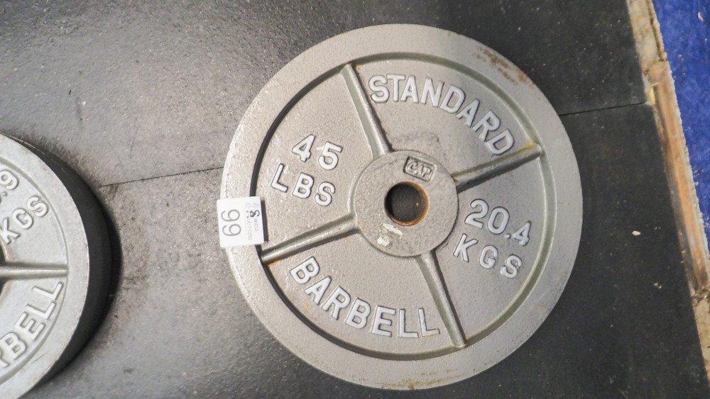** Winning this bid is contingent on the higher of Lot 0 the Entirety of Auction Items lot and the total of the individual Lots**. If the Lot 0 Entirety of Auction Items lot sells for a higher value than the total of the individual lots; the auction items will be sold to the high bidder of the Entirety lot. If the total of the individual lots is higher than the Entirety of Auction Items lot, then the items will be sold to the high bidder of the individual lots. Includes 2x45 lb; 2x35 lb; 2x25 lb; 2x10 lb; 2x5 lb plates
