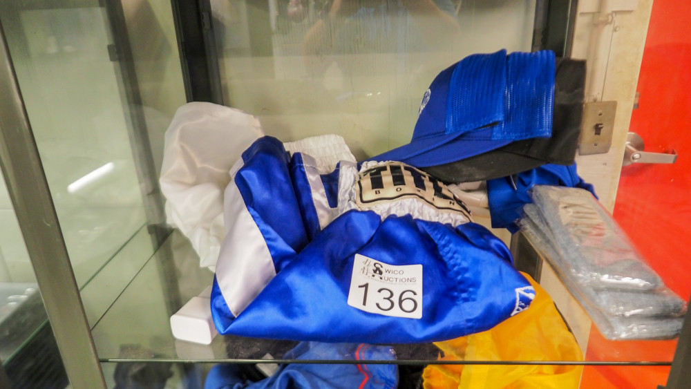 ** Winning this bid is contingent on the higher of Lot 0 the Entirety of Auction Items lot and the total of the individual Lots**. If the Lot 0 Entirety of Auction Items lot sells for a higher value than the total of the individual lots; the auction items will be sold to the high bidder of the Entirety lot. If the total of the individual lots is higher than the Entirety of Auction Items lot, then the items will be sold to the high bidder of the individual lots. Includes boxing shorts; caps; sweatbands; shirts; sling bags