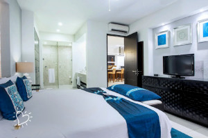 Retreat to a Mexican paradise in Nuevo Vallarta with an all-inclusive stay at the five-star Marival Distinct Luxury Residences and World Spa. Package includes 4 nights for 2 guests with all-inclusive amenities including resort pools, a golden sand beach, sky lounge, and beachfront dining.