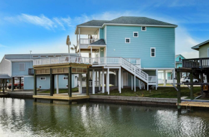 Enjoy two nights in a waterfront canal home with private beach access that is a short golf cart ride away. This home is just a walk or golf cart ride to the BEACH, West End Marina & Restaurant, Bait shop, and just 5 miles to San Luis Pass. The home has a private dock and community fishing pier as well as community pool access (for extra fee). This home sleeps 8 and is subject to availability and excludes holidays.