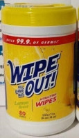 Qty of 2 WIPE OUT 80ct Antibacterial Wipes Lemon Scent