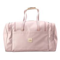 Sleeve on the back is designed to fit securely over the extended handle of a rolling suitcase.