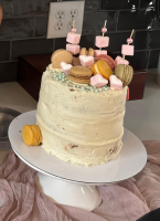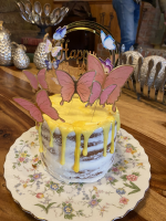 Need a birthday cake, or a cake for a specific event but don't feel like making one? Enjoy a delicious homemade cake without the hassle of baking it yourself. This is a small high cake with homemade buttercream icing that feeds 12-15 with the Choice of White, Chocolate, or Lemon. It is a 7-inch, three-layered high and round cake.