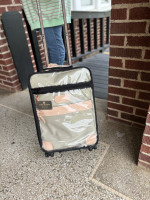 Who doesn't love Jon Hart? This tan and pink carry on with wheels is sure to make your travels perfect! It also comes with a protective cover so you don't have to worry about it getting tarnished. Three available spots for hot stamping, and it comes complimentary with the purchase.