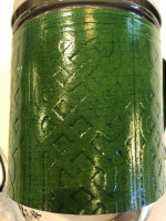 Green handcrafted leather koozie mug and mason jar. Deer Antler keychain and necklace.