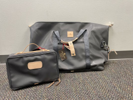 The Jon Hart Luxury Luggage Package includes a tan Jon Hart Medium Square Duffel and matching Shave Kit all with Personal Monogram Vouchers! Bring your Jon Hart items into And Sew On in College Station, TX for complimentary monogramming!