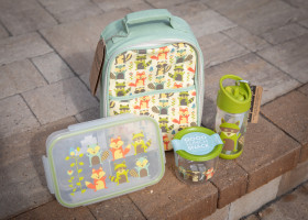 Sugar Booger Fox Zip Lunch Tote with Bento Box, Flip & Sip Cup and 2 Snack Containers.
