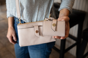 Michael Kors MK Charm Soft Pink Medium Leather Crossbody 8.75 w x 4.75 h x 2.25 d