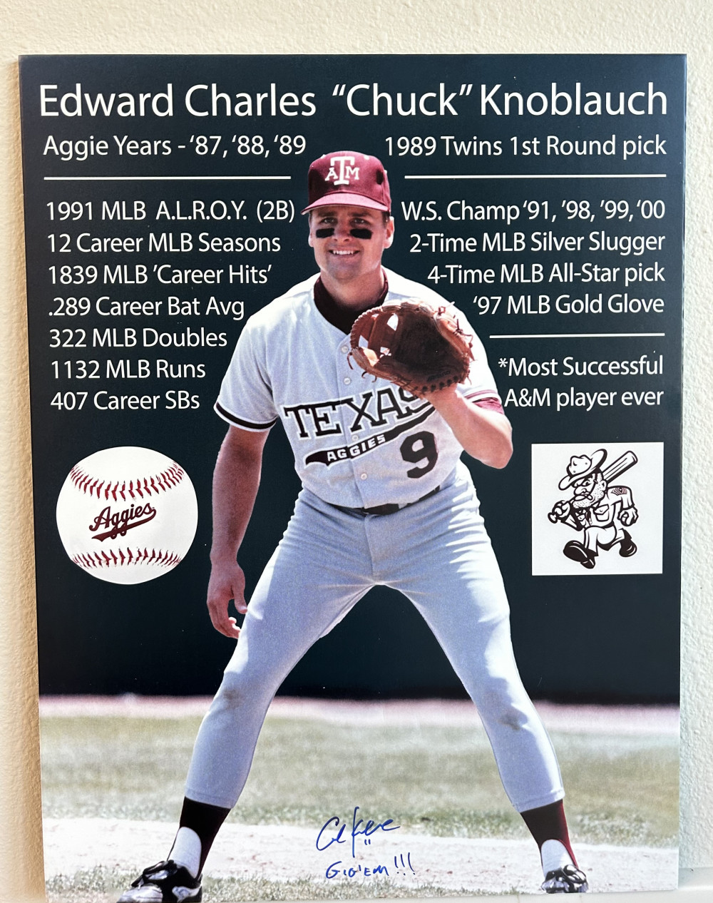 Autographed Chuck Knoblauch Rookie of the Year Louisville Slugger Baseball Bat and Poster.
