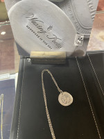 This beautiful Waxing Poetic sterling silver chain and medallion. Says "Guide us on the voyage of life."