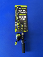 Crappie Fishing Setup. Flambeau Tackle Bag, Profishiency Telescopic Fishing Pole, 2 packages of Strike King Jigs, Pinch Weights, Swivels, and Pink Jig Heads.