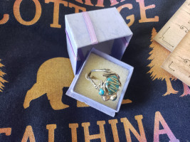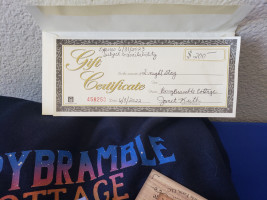 2 night stay at Berry Bramble Cottage, expires June 31, 2023 and is subject to availability. Berry Bramble Cottage hooded sweatshirt and a size 11 Turquoise and silver Frog Ring.